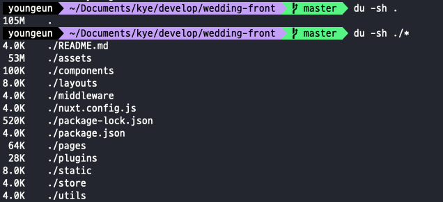 | $ du | 현재경로 아래 확인(기본명령어) |